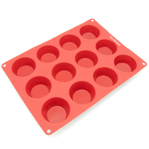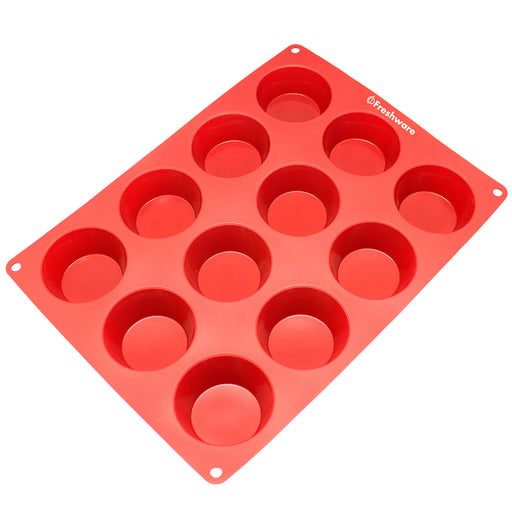 Create your own special desserts or homemade soaps with the Freshware CB-100RD 12-Cavity Silicone Muffin, Cupcake, Brownie, Cornbread, Cheesecake, ...