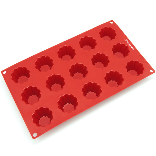 Create your own special desserts or homemade soaps with the Freshware SM-107RD 15-Cavity Silicone Small Caneles and Bordelais Fluted Cake Mold. Thi...
