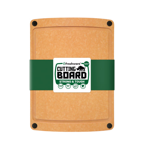 A CUT ABOVE - Small 11.7 x 8.5 inch wood fiber composite cutting board, wooden natural color, removable silicone corners, dual-sided cutting surfa...